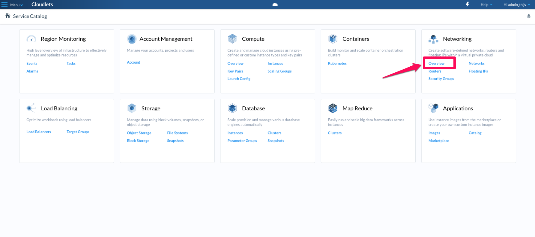 - Ga vanaf de Service Catalog / het dashboard naar Networking: